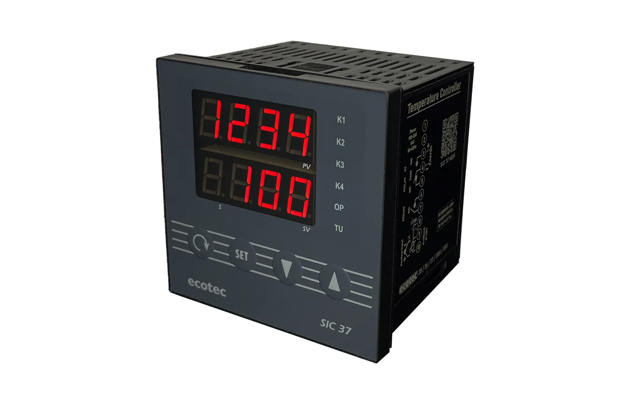 کنترلر ecotec با نمایشگر دو ردیفه مولتی رنج مدلecotec SIC 38-V M-R2 عمودی ۹۶*۴۸با خروجی SSRورله و وردی ترموکوپلPT100 J&K