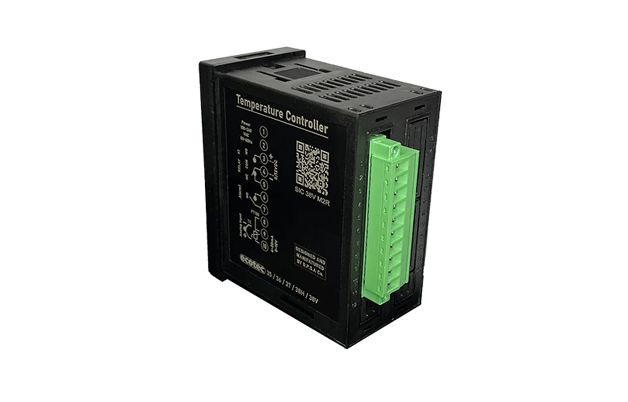 نمایشگر و کنترل کننده دما MODEL 38H-M-R2مدل عمودی-38 ECOTEC INSTRUMENTATION TEMP CONTROLLER یا کنترل کننده دما دیجیتال دارای دو نشانگر مدل عمودی ( SIC38V) از نوع تنظیم کننده لمسی با سنسور حرارتی تایپ (,TC (J,K و PT100 با وردی مولتی . دارای خروجی دو رله آلارم و رله کنترلی 220VAC 50HZ 5Aبا رنج حرارتی کنترلری 2000 - 0 درجه سانتی گراد و شکل نصب بصورت مدل عمودی به ابعاد 95*96 * 48 با وردی تغذیه برق 220-100 ولت HZ50-60 AC V