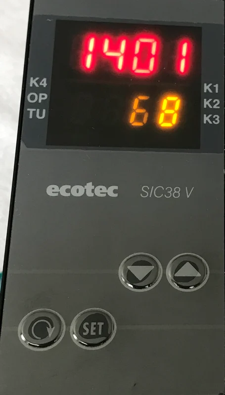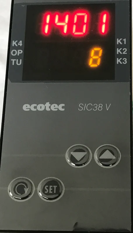 کنترلر ecotec با نمایشگر دو ردیفه مولتی رنج مدلecotec SIC 38-V M-R2 عمودی ۹۶*۴۸با خروجی دو رله و وردی ترموکوپلPT100 J&K