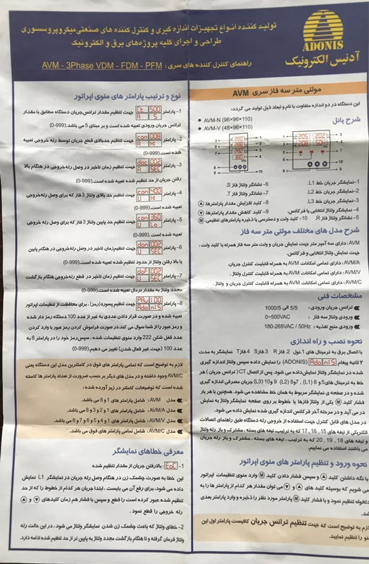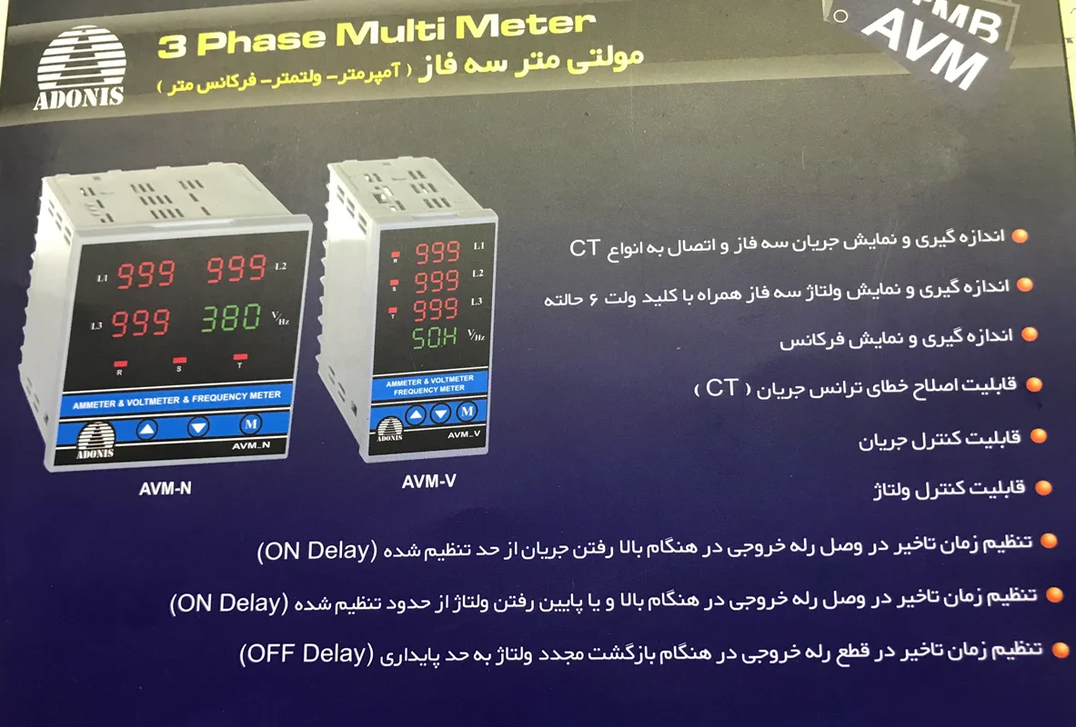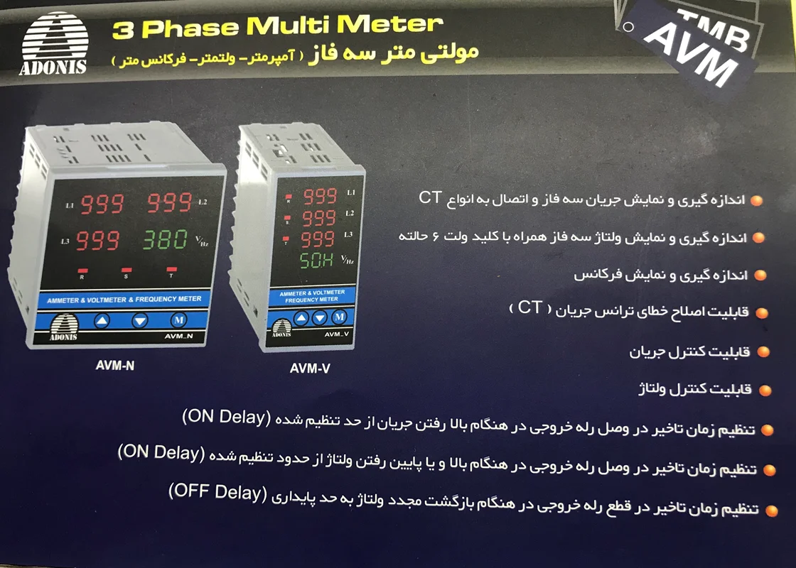 مولتی متری سه فاز که رویت می نمایید یکی از بهترین ها در نوع خود می باشد.ابعاد آن(D) 96(W)*96(H)*110است و از نوع کنترل دار دو رله با نشانگر می باشد.همراه با نمایش و کنترل جریان ولتاژ و فرکانس را قابلیت نمایش و کنترل جربان و ولتاژ را بصورت جداگانه دارد.
