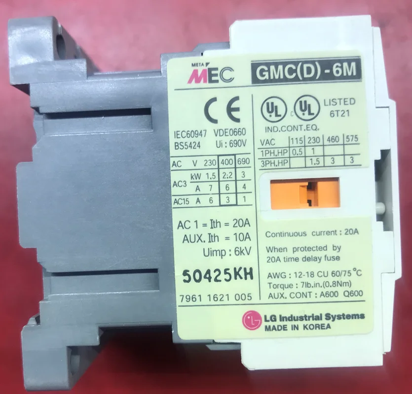 مینی کنتاکتور ال جی مدل GMC-6M با جریا ن 12 آمپری موتوری و ولتاژ بوببن 220 ولت AC - 50/60 HZ ساخت کشور کره جنوبی یکی از شناخته ترین محصولات در بازار صنعت برق ایران می باشد . این مینی کنتاکتور به دلیل ابعاد کوچک و جمع و جور خود یکی از گزینه های مناسب استفاده در پانل های کنترل می باشد . قیمت مناسب و کیفیت بالا و عمر طولانی و ابعاد بسیار مناسب و کارایی بالا انرا گزینه مناسبی کرده است جهت مصرف این کالا .