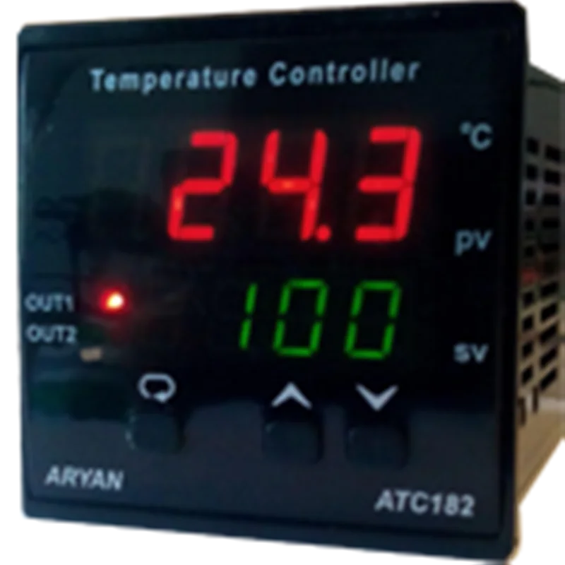 کنترل کننده حرارت مدل ATC183 با نمایش همزمان درجه حرارت و عدد پیش تنظیم بصورت همزمان 3 رقم kیا PT100 ترموستات PID با خروجی RELAY و SSR ورودی ترموکوپل از نوع کنترل درجه حرارت تا 1000 درجه سانتیگراددارای خروجی : رله بصورت کنتاکت باز و بسته NO/NC (تنظیم هیسترزیس خروجی ( 10-0 درجه سانتیگراد در حالت 0 دستگاه بصورت هوشمند در مد کنترل فازی کار می کندتغذیه دستگاه 80-240 VAC & DC : ابعاد : 72*72*120 mm (جنس بدنه ABS) این کنترلر. دیجتیتال را جهت مصارف گوناگون که تا حرارت ۱۰۰۰ درجه را توصیه می نماییم دارای کابری ساده و دقیق و طراحی بسیار زیبا و شکیل می باشد